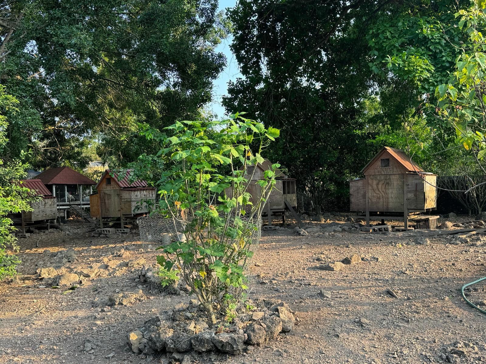 The chicken coops are located higher up – protection from snakes. Apparently, feisty roosters 🐓 take care of that and ⚡️the snakes if need be 😉